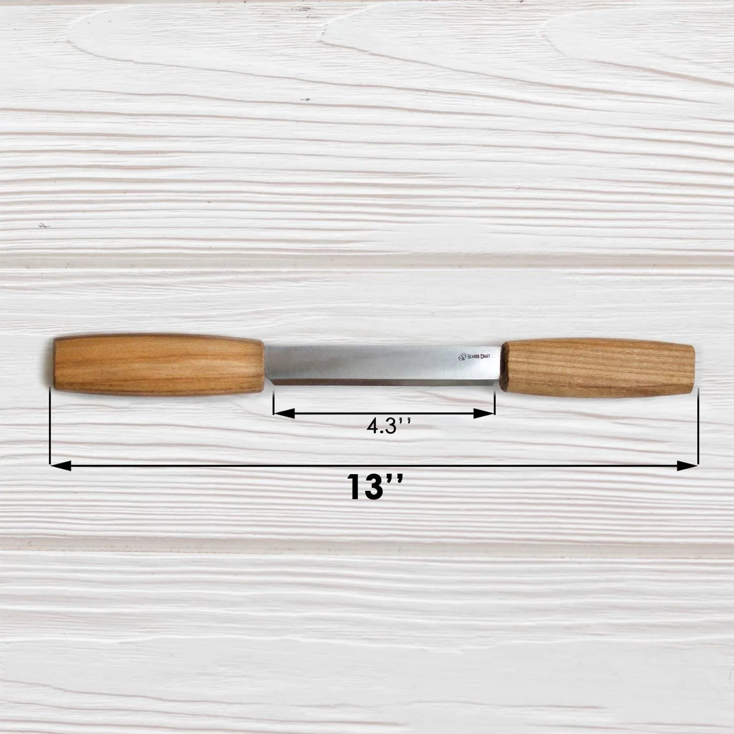 Þægileg viðarhöld á báðum endum tryggja gott grip og stjórn.