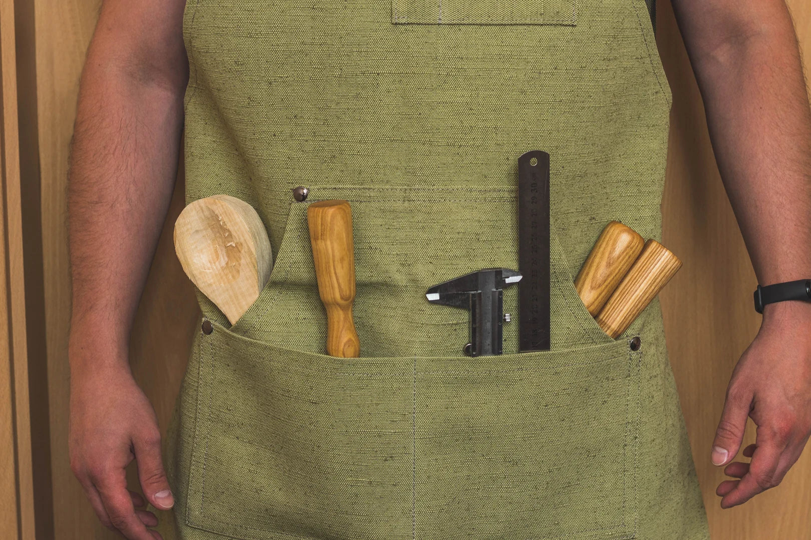 Vönduð vinnusvunta úr sterku grænu canvas-efni sem sameinar þægindi og stíl.