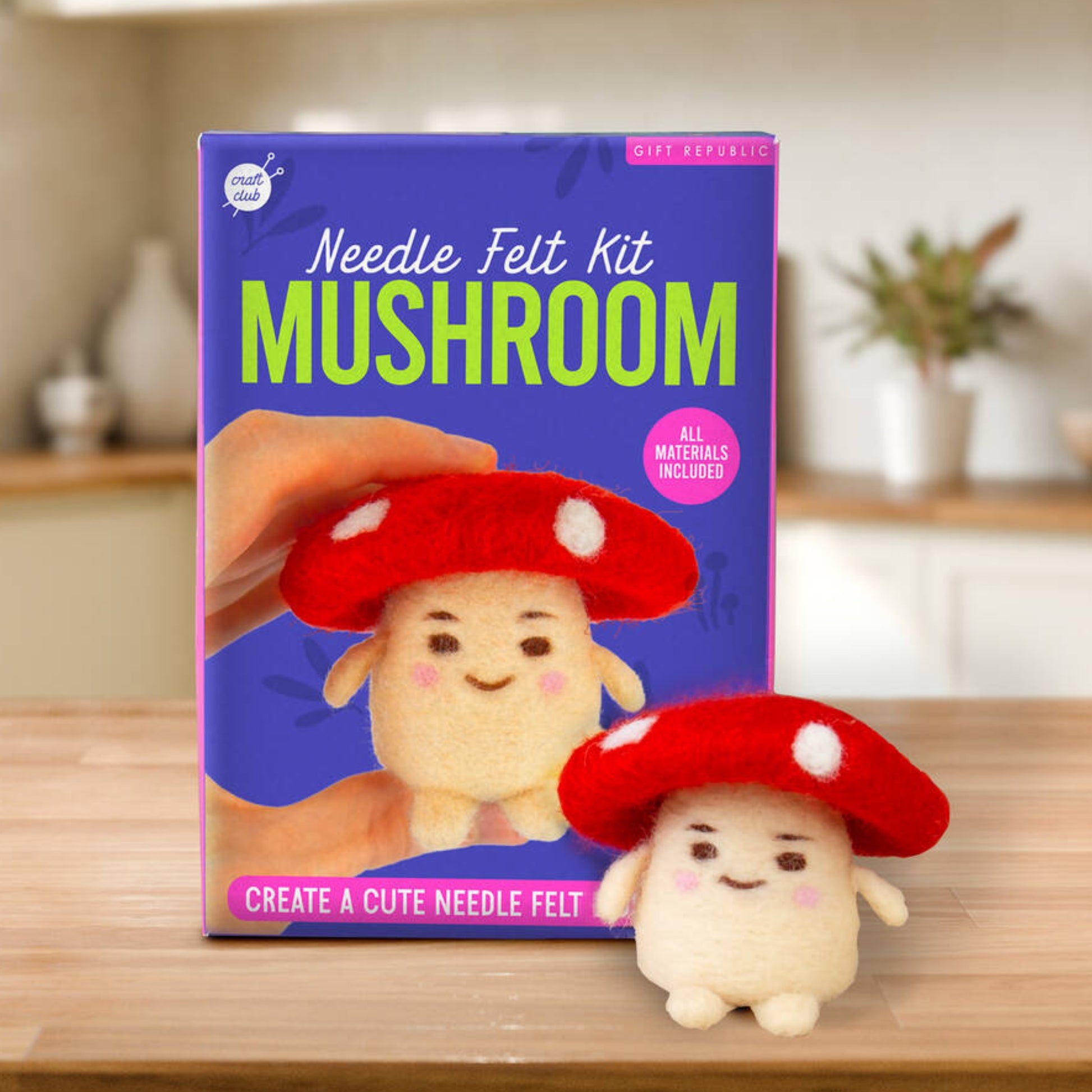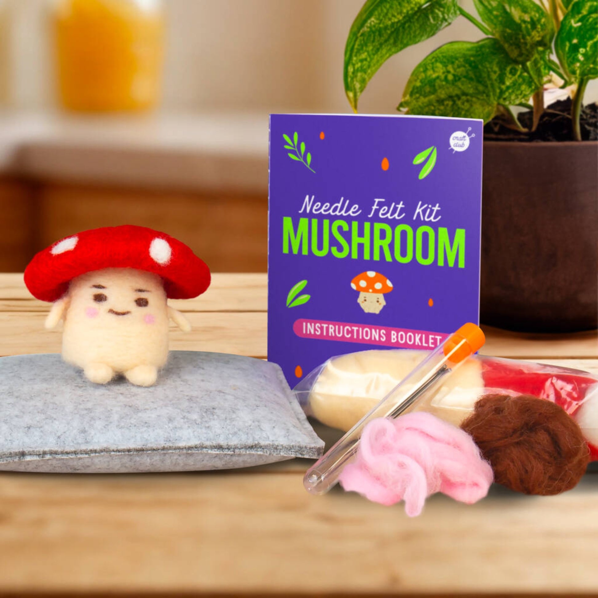 Búðu til þinn eigin svepp. Settið inniheldur allt sem þú þarft – ull í fimm litum, filtunarnálar, svampur til að vinna á og skref-fyrir-skref leiðbeiningar. Þetta er fullkomin gjöf fyrir föndrara á öllum aldri.
