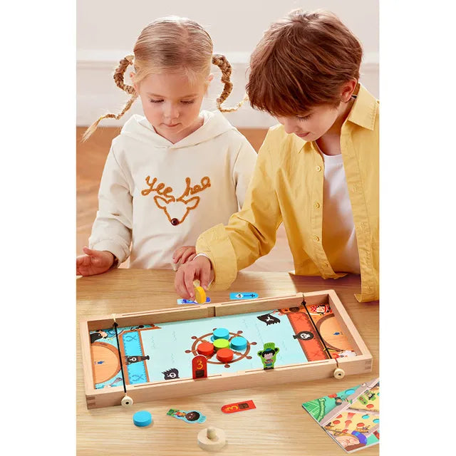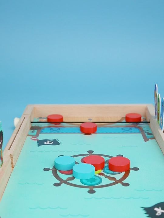 Borðið hermir eftir þythokkí þar sem þú notar teygjur til þess að skjóta skífunum. hægt er að spila 10 mismunandi leiki á borðinu t.d. keilu, þythokkí, stiga leiki og fleira. Leiðbeiningar fylgja.